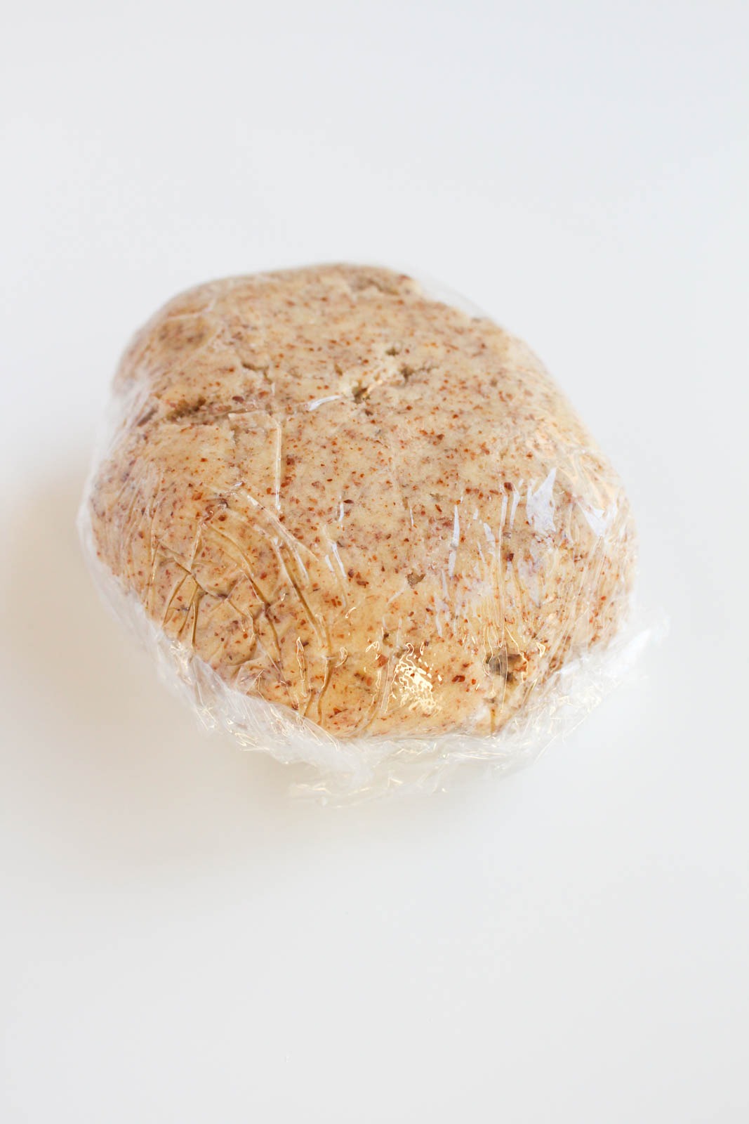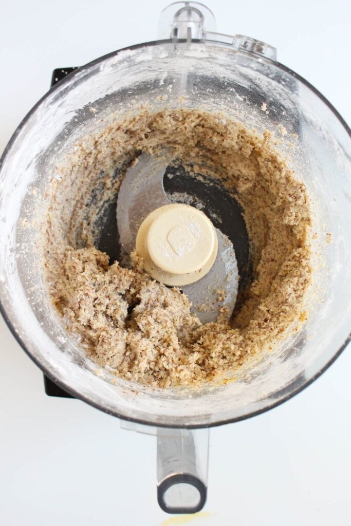 STEP 1 – In the bowl of a food processor, add all of the ingredients, then pulse until a dough forms. You can use a rubber spatula to scrape the dough out and place it onto a piece of plastic wrap that is laying flat on the counter. Gently form the dough into a ball, then wrap the plastic tightly around the dough. Let the ball of dough chill in the fridge for at least 20 minutes, preferably an hour.